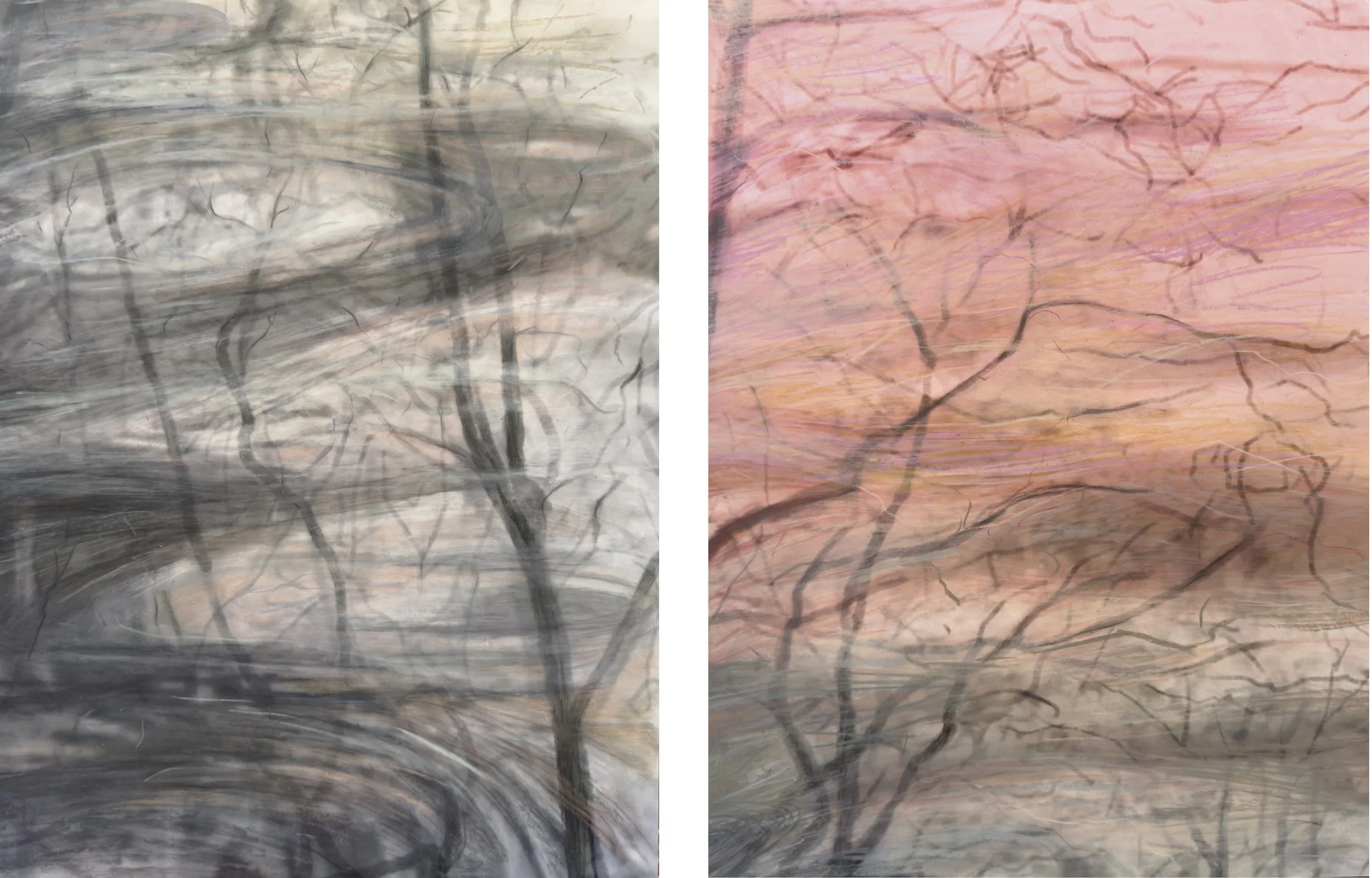 Digital collages created with layers of drawing and photography. The images are printed and mounted and often enhanced with pastel and charcoal. The practice of making these intentionally ambiguous almost-landscapes is open-ended and the results are often surprising… a nice complement to the more analytical seascape series.